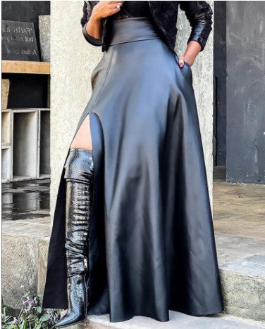Sold outHigh-Slit Leather Skirt
