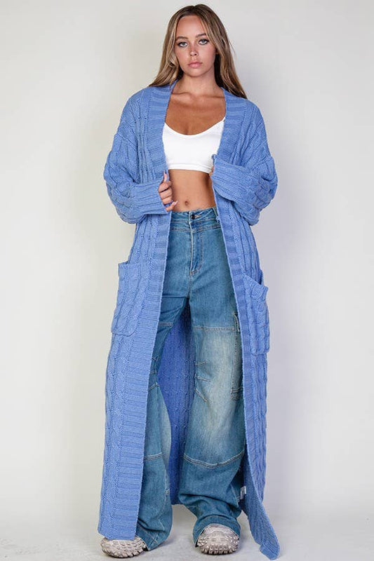OVERSIZED MAXI CABLE KNITTED SWEATER CARDIGAN