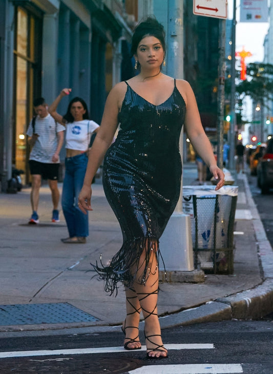 Fringe Sequin Midi Dress